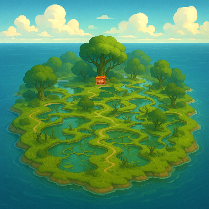☀️ 氣候:濕地型氣候🐸 優勢物種:兩棲生物🗣 語言系統:海呱語(語音結構與地球之客語海陸腔相同)🌀 島嶼形狀:輪廓呈不規則,隨地表濕氣波動而動態擴張